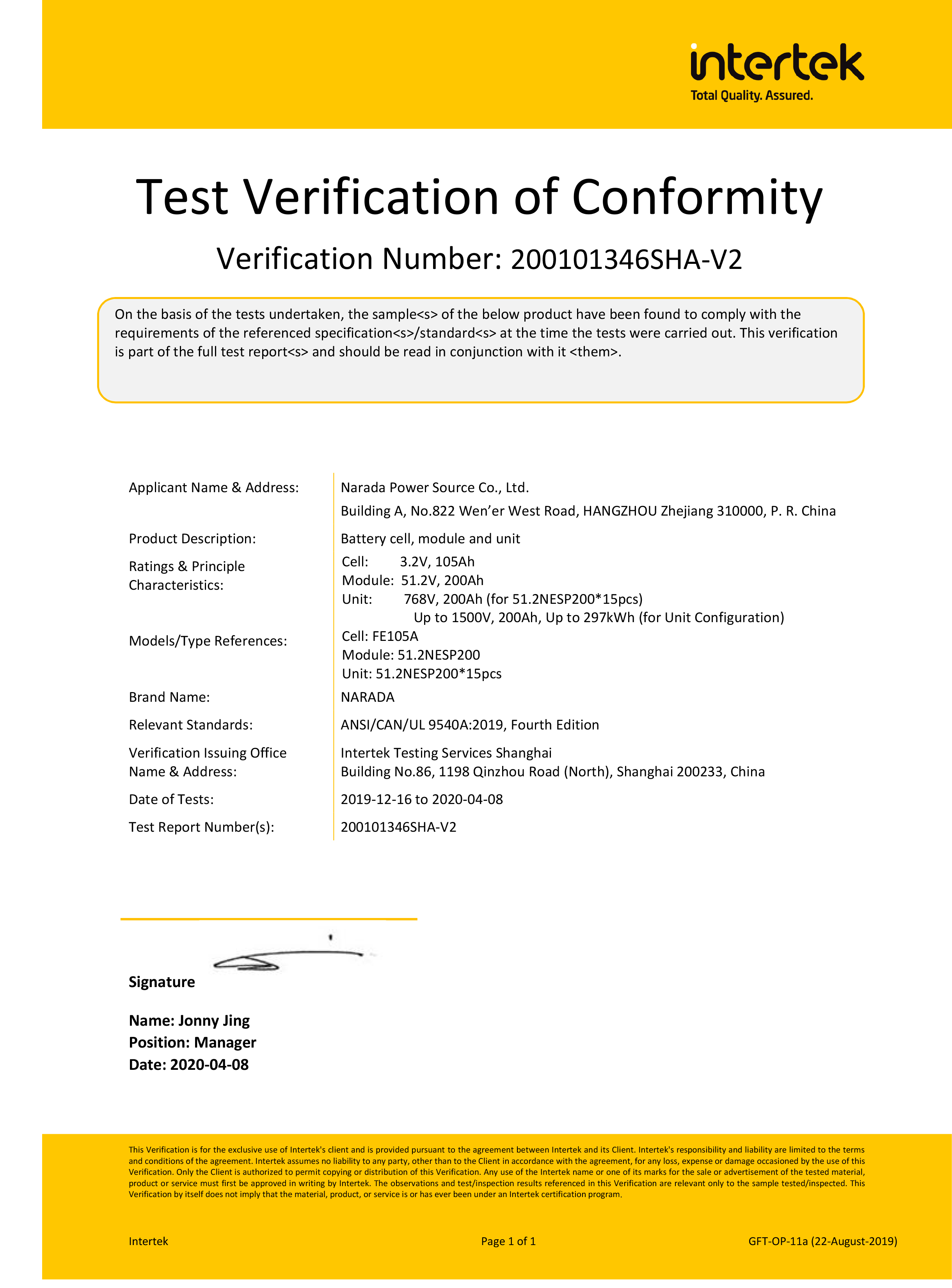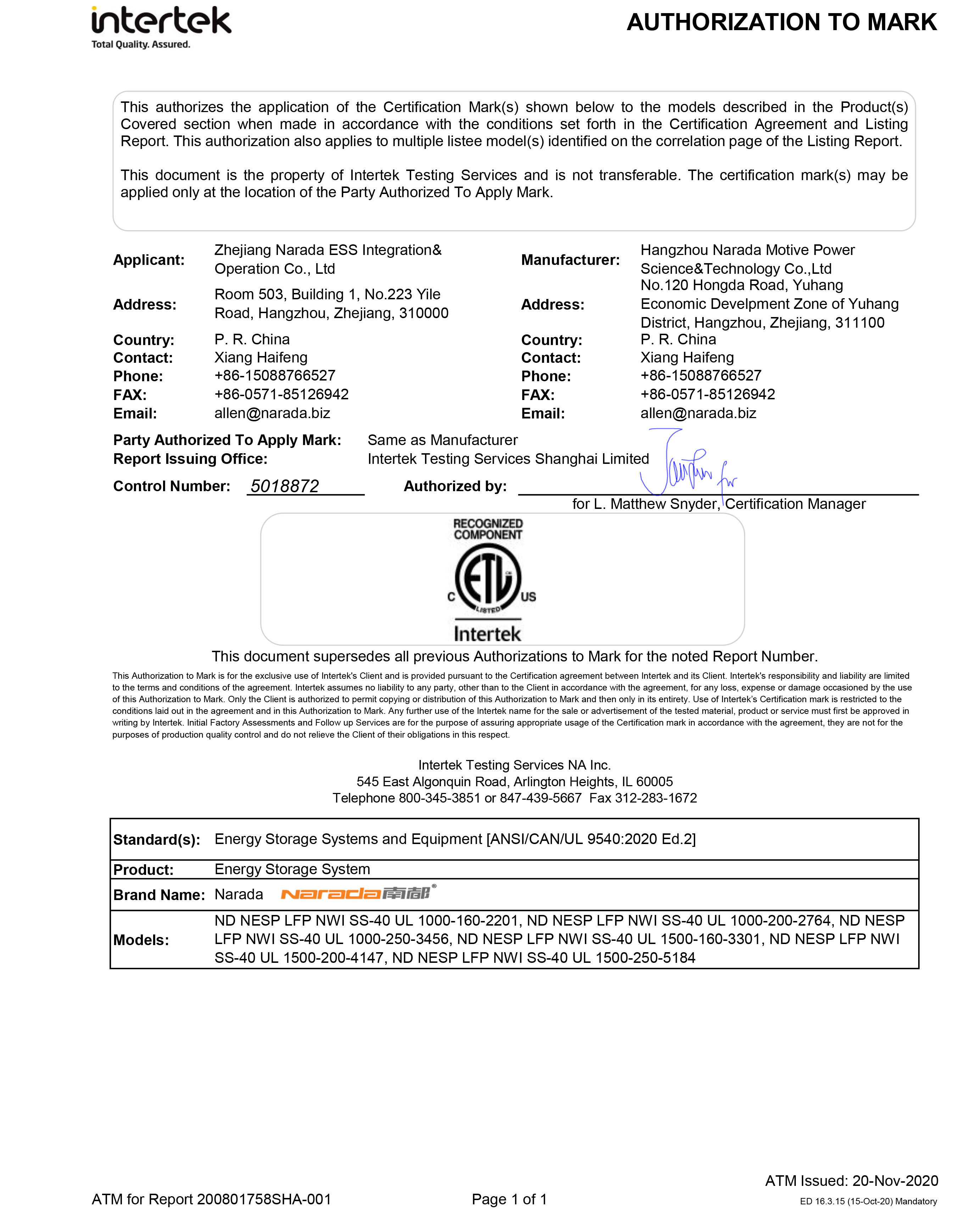 今年会电源为全球第一批通过MW级集装箱储能系统UL9540、UL9540A认证的企业。通过UL9540、UL9540A认证,意味着今年会储能系统在全球范围内具有极佳的认可度。